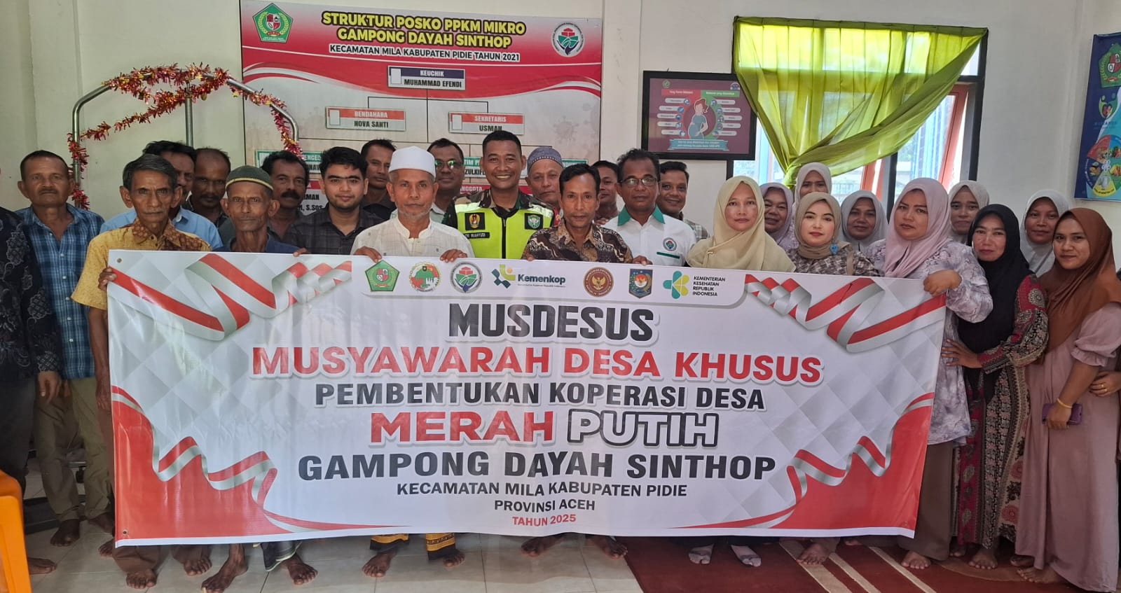 Gampong Dayah Sinthop Kecamatan Mila Kabupaten Pidie, sukses melaksanakan Musyawarah Desa Khusus (Musdessus) dalam rangka pembentukan pengurus Koperasi Desa Merah Putih Syariah. Kegiatan ini merupakan tindak lanjut atas surat dari Kementerian Desa, Pembangunan Daerah Tertinggal, dan Transmigrasi Republik Indonesia (Kemendesa PDTT RI) Nomor: B-150/PDP.04.01/V/2025 tanggal 14 Mei 2025, yang menginstruksikan percepatan pembentukan serta pelaksanaan rapat anggota koperasi desa.